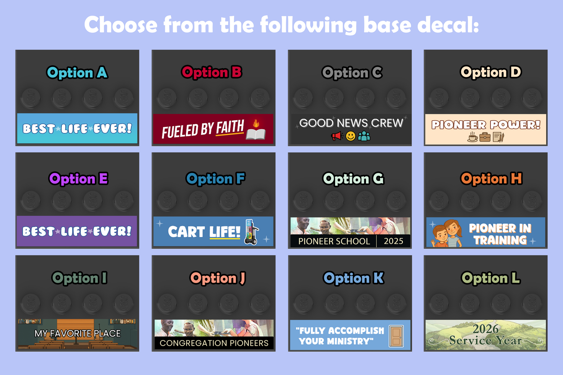 Bring the public ministry to life with this one-of-a-kind building set—now available in both male and female versions! This unique kit includes everything you need to create a custom ministry-themed minifigure, complete with a display stand, a “Teaching Toolbox” briefcase, and your choice of six stand decal designs for each version.